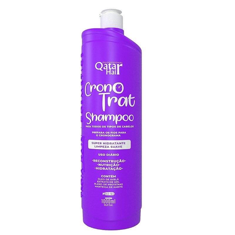 Conteúdo do Kit: 1 – Shampoo Cronotrat Qatar Hair 1L 1 – Condicionador Bálsamo Cronotrat Qatar Hair 1L